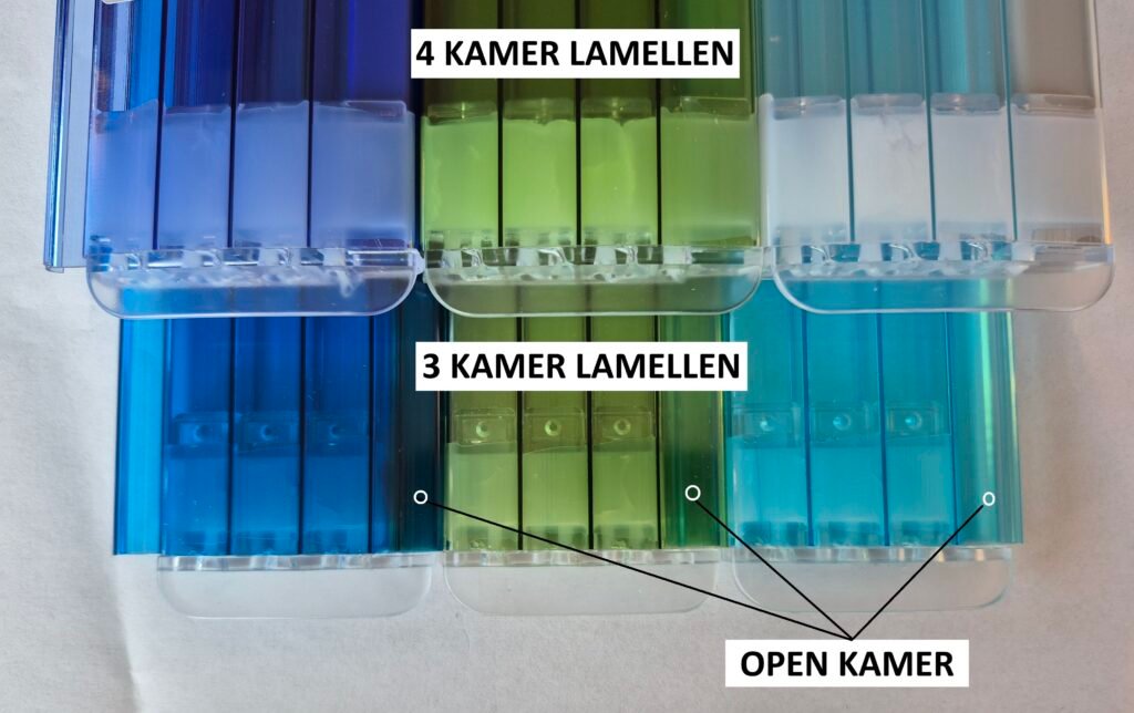 - Kies 4-kamer lamellen als: U op zoek bent naar maximale levensduur, betere isolatie (energiebesparing), veiliger en uitstekende bescherming tegen hagel (polycarbonaat)